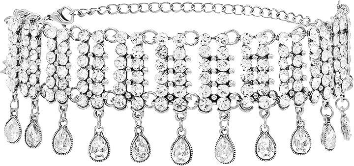 華やかな存在感を放つ、デザイナーズチョーカー」 このエクスクルーシブなダンス用チョーカーは、一際目を引くラインストーンと、光り輝くドロップ型ペンダントでデザインされています。