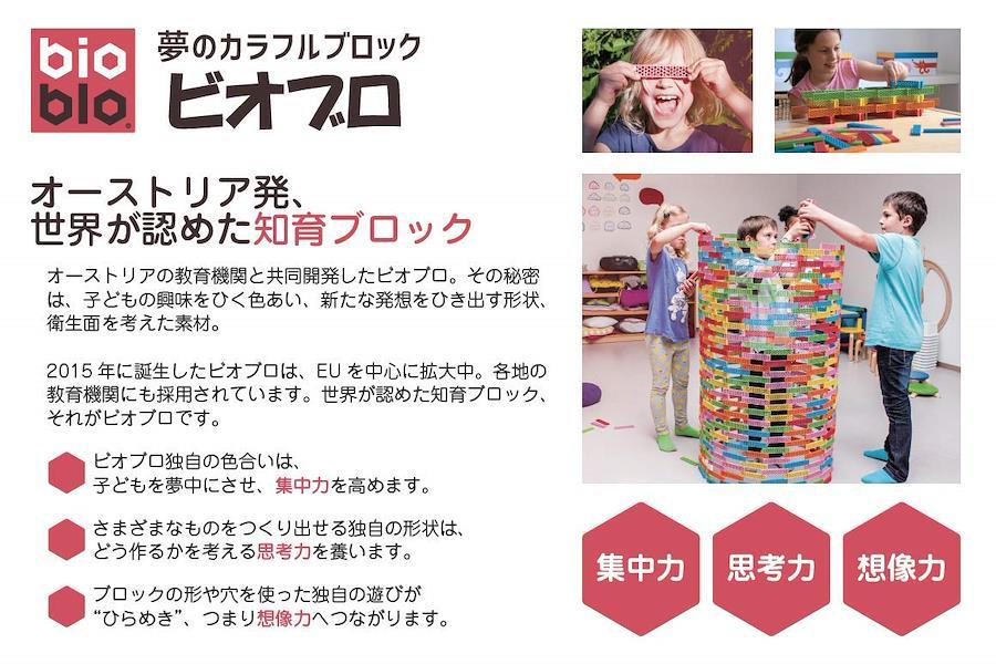 ■商品説明お客様の性別:ユニクス カラフルで、洗える積み木「ビオブロ」。子供が夢中になるカラフルさが知育に最適。洗えて清潔に保つことが可能。 知育に最適。カラフルな色合いが、集中力/思考力/想像力を高めます。 色は中に練りこむため塗装ではありません。色落ちすることがありません。 汚れたら、石鹸などで洗うことが可能! 多くのお子さまが遊ぶ場合は、清潔に保つことで、風邪などの感染の予防につながります。 水をはじくので、シャボン玉あそび、お風呂あそびも可能! 対象年齢 : 3~99才 注意:掲載画像は、イメージ画像のためお買い上げの商品だけで作ることができない場合がございます。?もっと見る商品紹介オーストリアで開発された積み木「ビオブロ」、最大の特徴は【木製なのに洗えること】。60%の木材とプラスチックを混ぜ込んだ新素材で、撥水が可能に! お風呂でも遊べます! もう一つの特徴は【カラフル】。全10色のカラフルな色合いがこどもの興味を引き付け、集中力・思考力・想像力を高めます。色は、製造時に一緒に混ぜこむため、万一舐めてしまっても色落ちせず安全です。「ファンボックス」はビオブロの全カラーが楽しめる、ビオブロ200個のセット。ビオブロの基本色すべてが入っており、子供たちに多くの楽しみと多様性を提供します。赤・黄・緑・青・オレンジ・ピンク・紫・黒・白・ベージュそれぞれ20個ずつのビオブロで、いろんなものを作ってみましょう。持ち運びに便利なハンドルも付いています。※注意事項・3歳未満のお子さまには与えないでください。・未就学児の場合は、保護者の方が付き添ってご使用ください。・お子さまが万一商品を舐めてしまっても色がとけることはありません。ですが、安全のため、舐めることが無いようにご注意ください。・投げたり、高い場所から落としたりすると破損の恐れがあります。ご注意ください。・洗う場合は、石鹸や中性洗剤のご使用を推奨いたします。・お風呂で使用することも可能ですが、100度近い熱湯での使用はお控えください。変形や破損の原因になる恐れがあります。(.co.jpより)安全警告未就学児の場合は、保護者の方が付き添ってご使用ください。