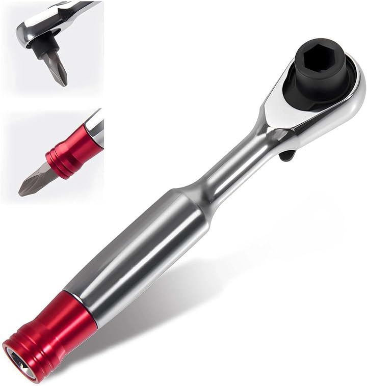 両頭デザインは柔軟性を提供し、一方の端はラチェットレンチとして、もう一方は磁石付き六角ビットドライバーとして機能します。