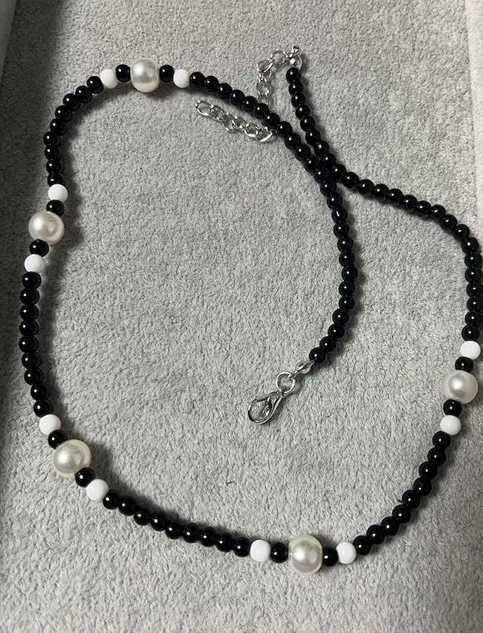 「デザイン」ブラックビーズネックレス。