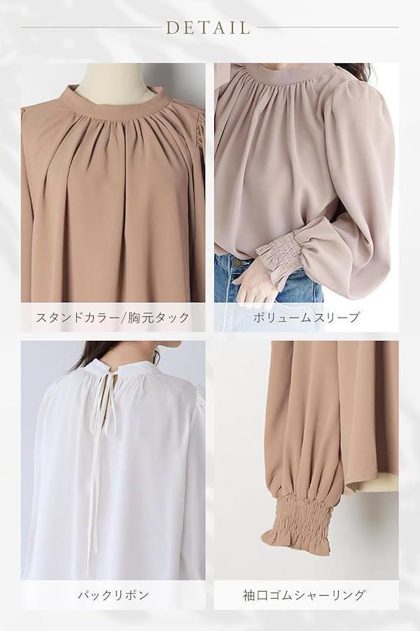 ポイント(1):女性らしさ溢れるふんわりスリーブブラウス。落ち感のあるやわらかな生地にたっぷりのギャザーやタック、ボリューム袖にバックリボン等、フェミニンさ溢れるデザイン。