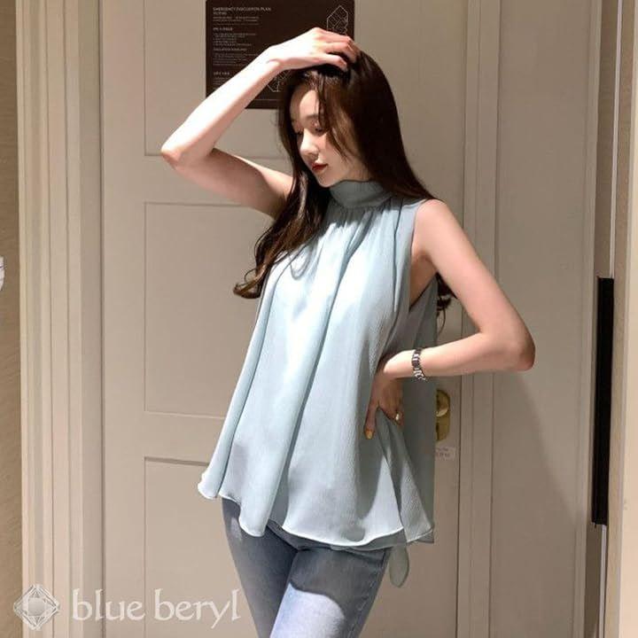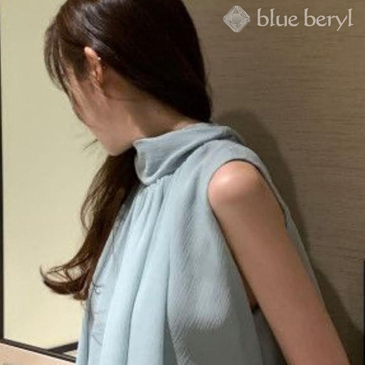 スタンドカラーとすっきりとしたノースリーブが、スタイルにシャープさをプラスして。