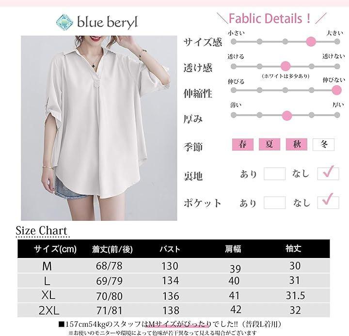 前着丈/後着丈/バスト/肩幅/袖丈 M : 68/78/130/39/30 L : 69/79/134/40/31 XL : 70/80/136/41/31.5 2XL : 71/81/138/42/32 *155cm/49kgのスタッフの場合:Mがジャストサイズでした(普段M着用)