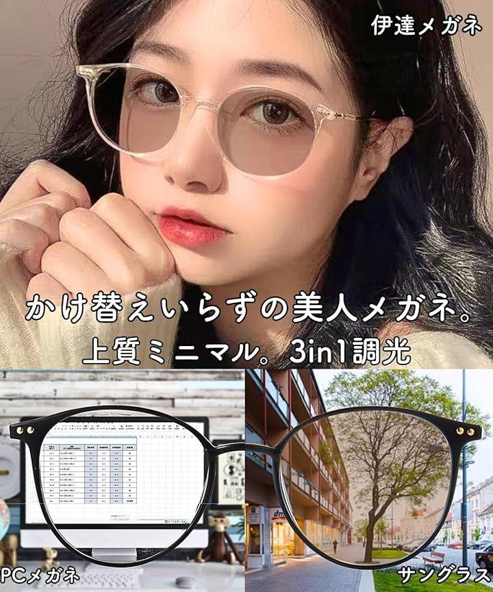 「これ1本でOK。室内外でかけ替え不要の調光レンズ」 おしゃれな伊達めがねが、屋外では紫外線から目元を守るサングラスに早変わり、UV400レンズが紫外線を99%以上カットし眩しさを抑え大切な瞳を保護します。