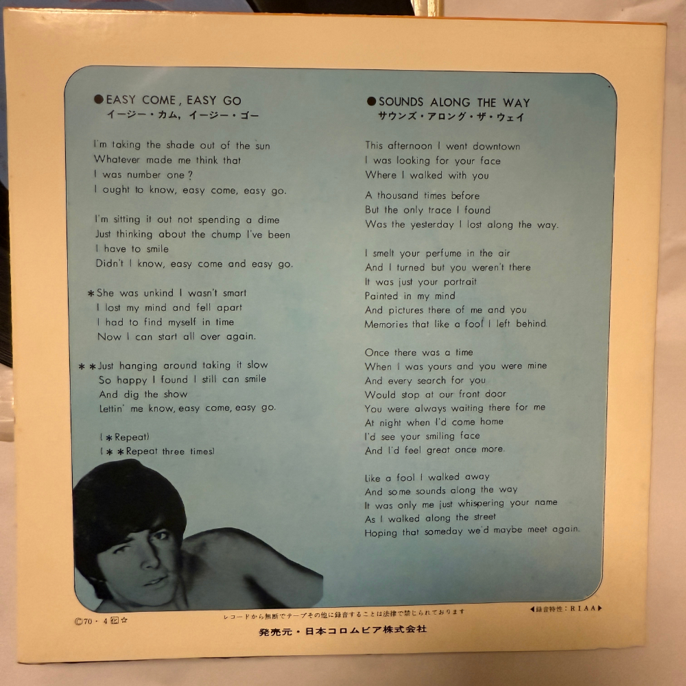 Bobby Sherman Showa Era Vintage EP Record Easy Come, Easy Go Sounds Along the Way 7-inch Extended