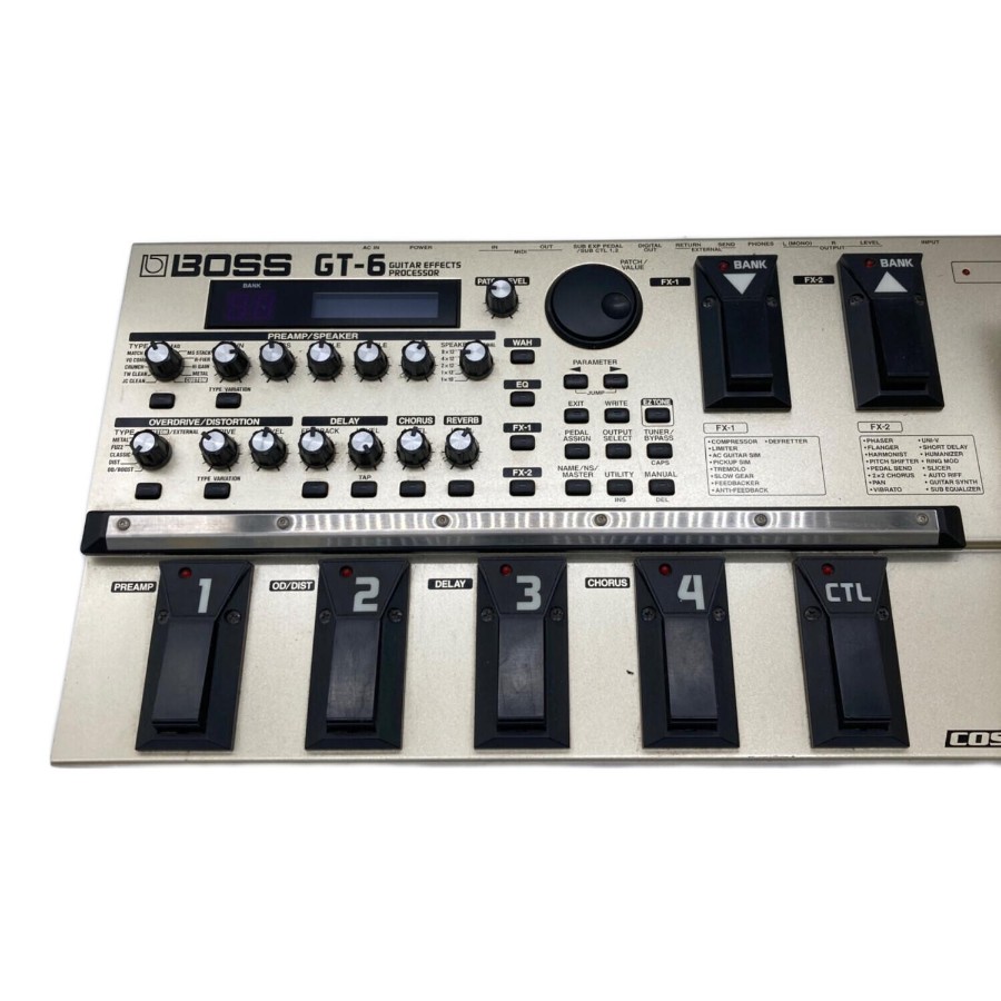 ■商品状態程度C:劣化やダメージなどがあるお品物こちらの商品はキズやヨゴレ、劣化などが見受けられます。また店頭にて展示販売を行っている為、記載に無いキズ、ヨゴレ、劣化などが見受けられる場合がございます。■商品説明ブランド :BOSS (ボス)アイテム名:マルチエフェクター型番 :GT-6動作確認:動作確認済み備考:アダプター付スタッフコメント:こちらのアイテムは、ドイツのブランド・BOSS (ボス)が手掛けたマルチエフェクターとなっております。■付属品本体のみ■その他必ず、商品注文される前に店舗情報に記載している注意事項をご確認ください。