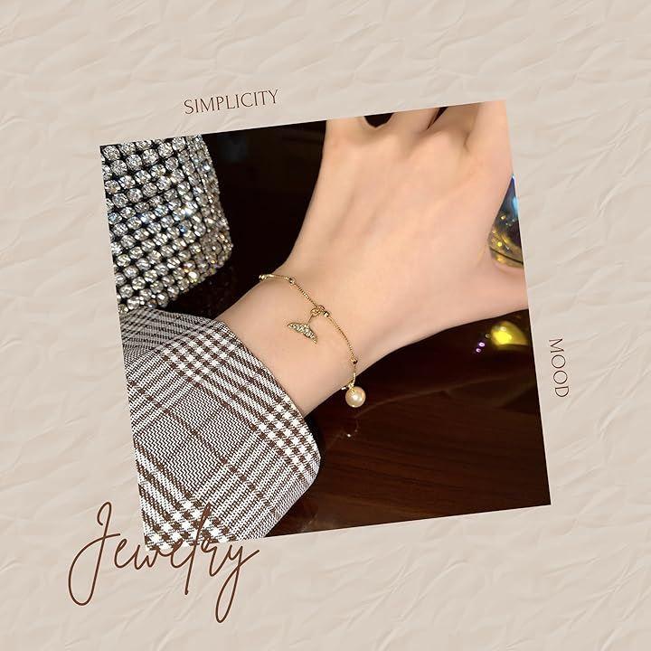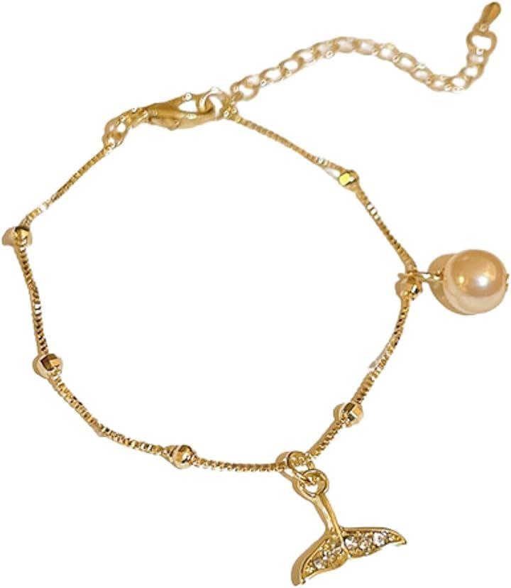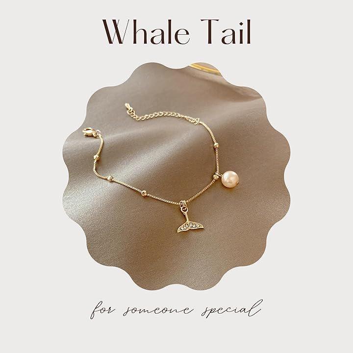 Bracelet Gold Chain Women's Pearl Whale Tail Motif Adjustable Present Gift Fashionable Accessory