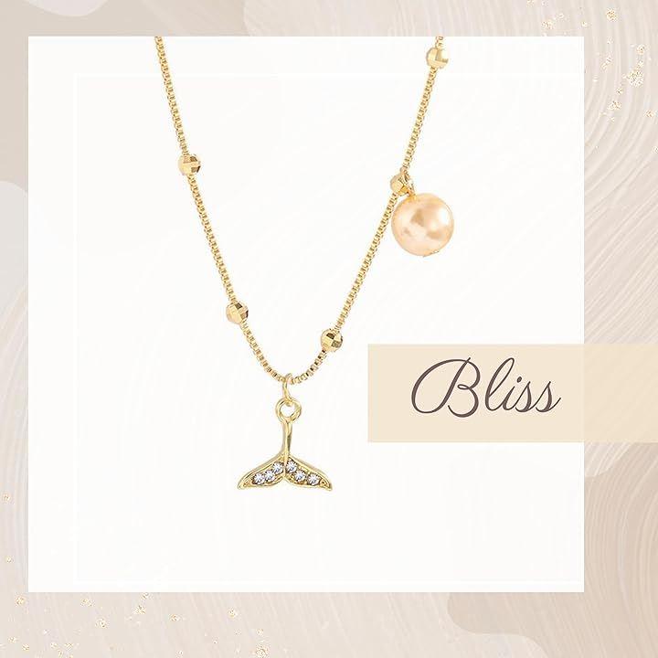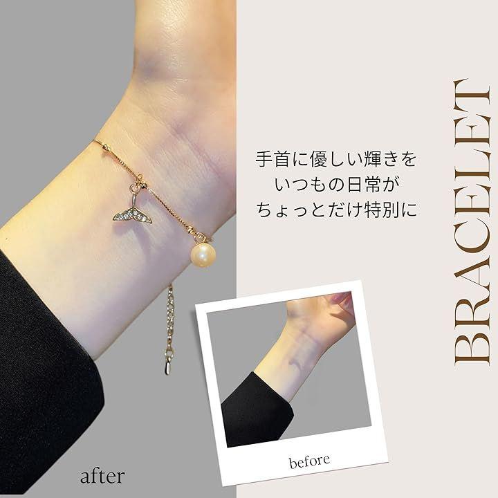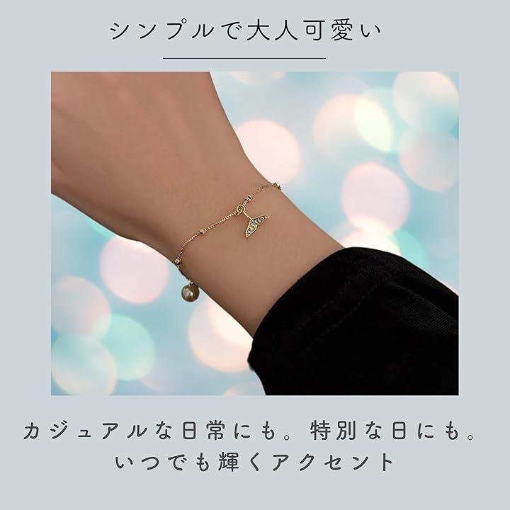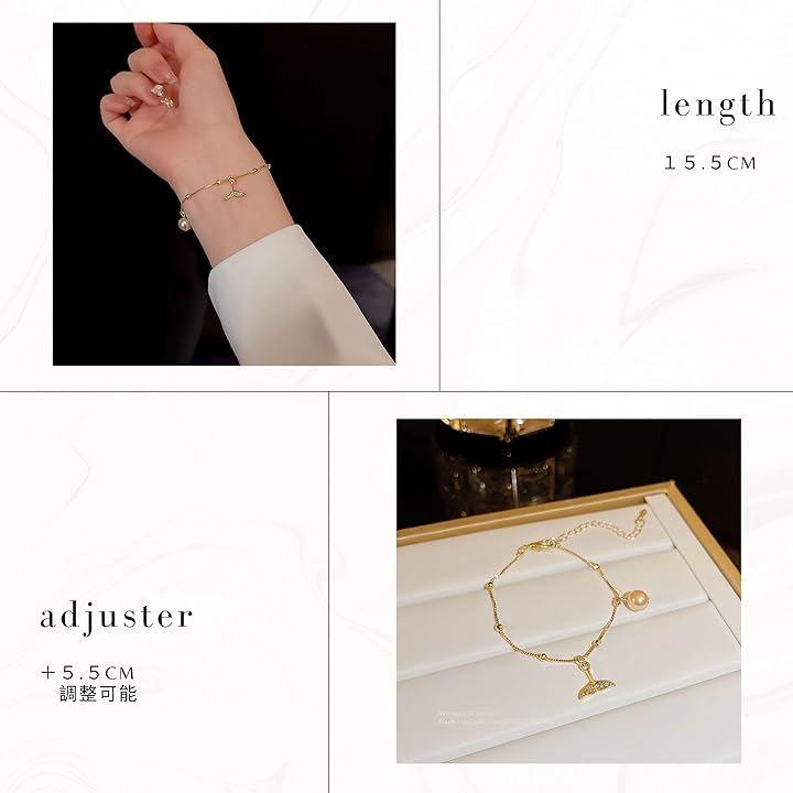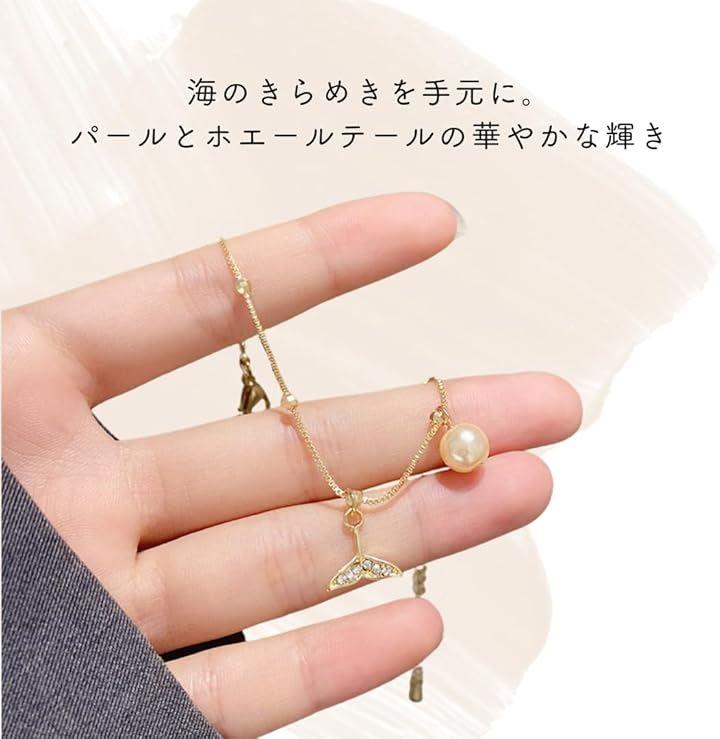 美しいゴールドチェーンに、エレガントな真珠と輝くクジラの尾モチーフがあしらわれたブレスレットです。
