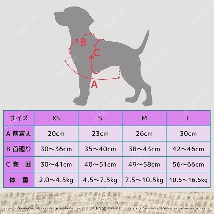 「購入上の注意」 XS、S、M、Lの4つタイプから愛犬の最適なサイズを選んでください