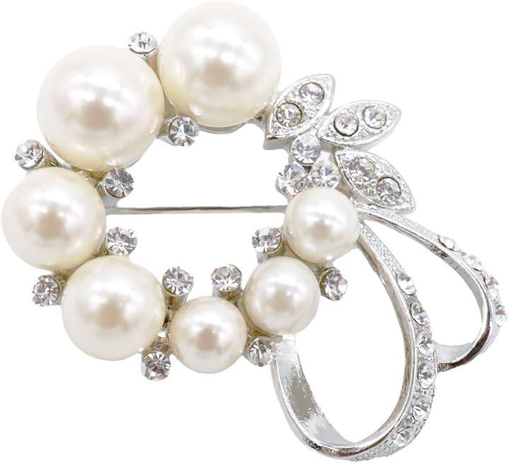 セレモニー、フォーマルシーンに映えるパールとカットガラスのブローチ