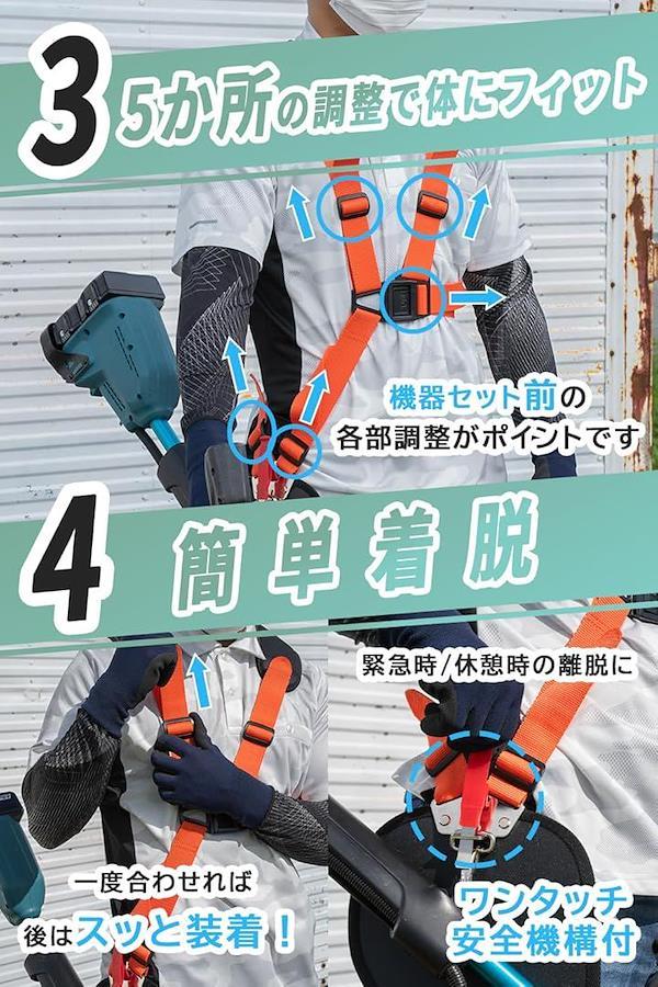 ⭕「5か所のベルト調整で体にしっかりフィット」 肩・胸・腰・吊り下げ部など、合計5か所で細かく調整ができます。