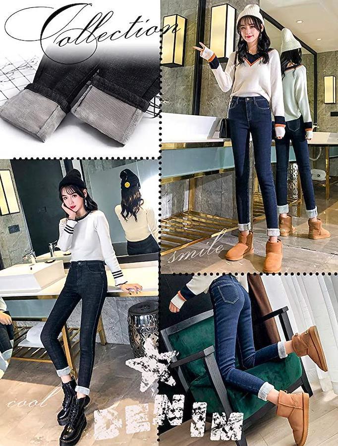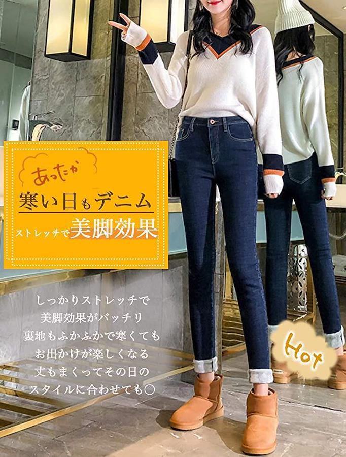 ・「暖かさを逃さない」 軽くてやわらかい裏起毛素材のレディースデニムパンツです。