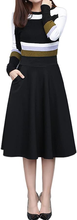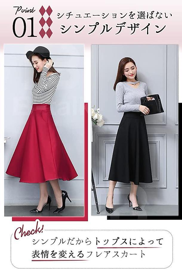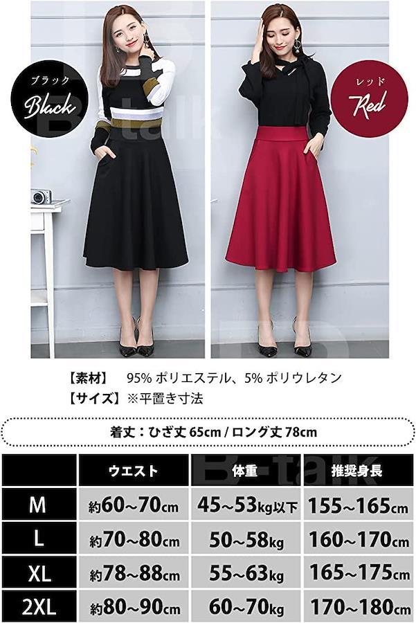 ・ウエストからAラインに広がるフレアなシルエットが、美しい女性らしさを演出し体系カバーにも一役買います・程よい伸縮性のある素材を使用し、ウエストゴム仕様ではき心地の良さも抜群です。