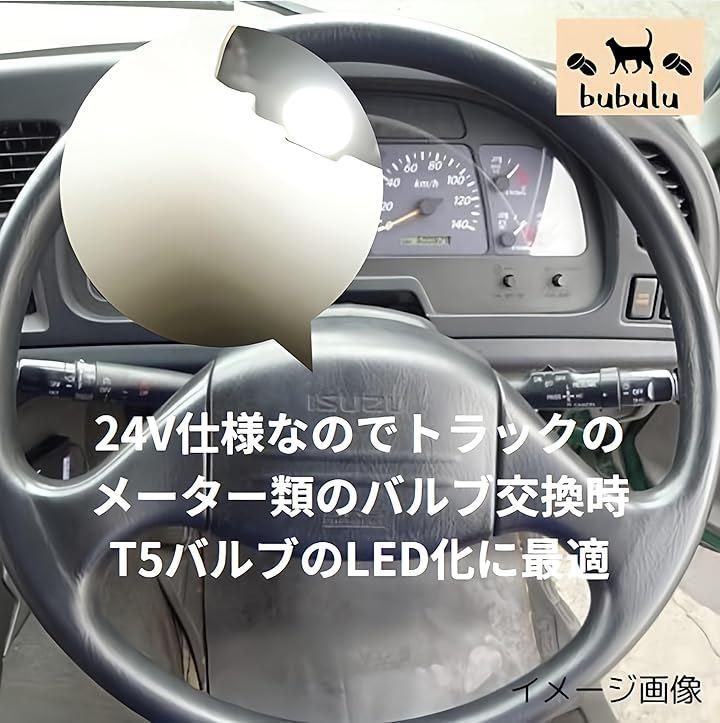 高輝度な24V専用のT5 LED電球は、ホワイト光の3連LEDバルブで、3面照射によりメーターパネルやエアコンパネルを鮮明に照らします。
