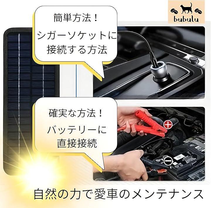 bubuluの12V 10Wのソーラーチャージャーは太陽光を利用して効率的にバッテリー充電が可能です 車のバッテリー上がり防止に役立ちアウトドアや長期保管時にも安心して使用できます 取り付けも簡単でメンテナンス不要の便利なアイテムです