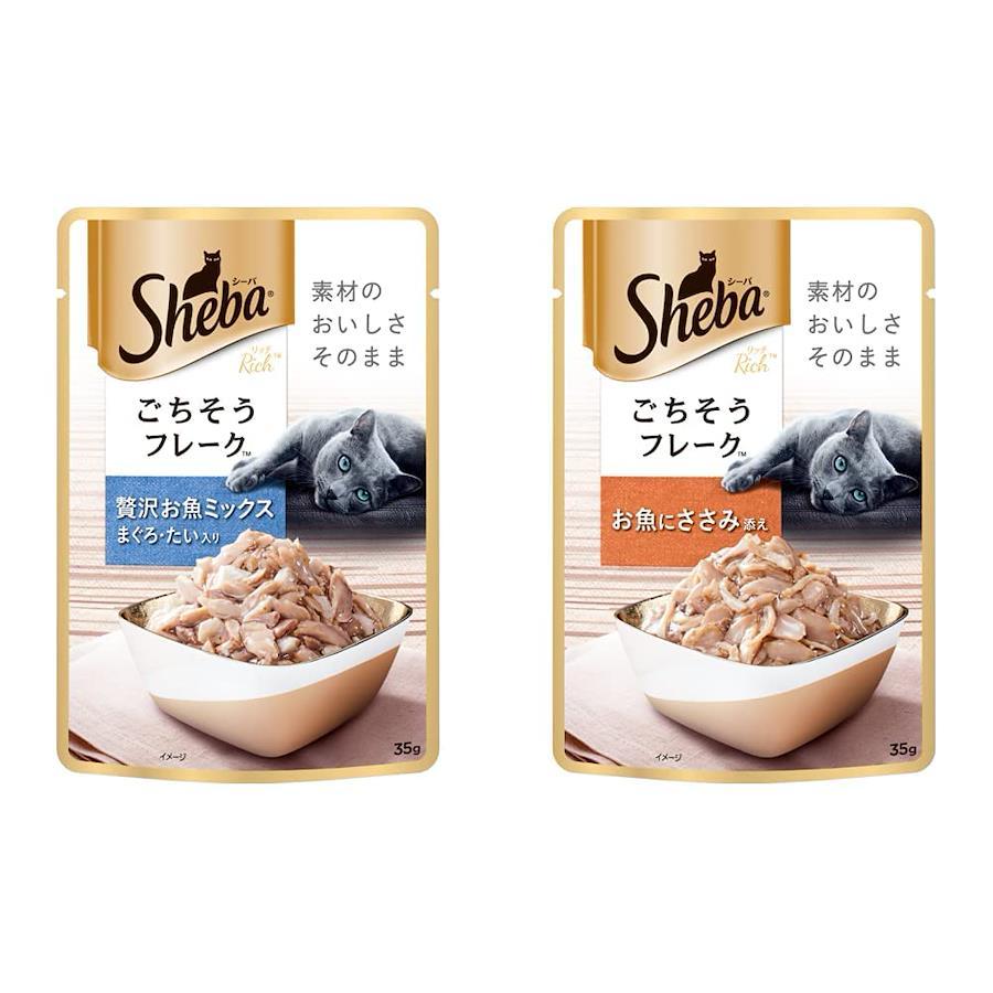 [Bundle] Sheba Rich Feast Flakes Cat Food with Fish and Chicken Fillet, 35g x 12 packs (Bulk Purchase) & Rich Feast Flakes Cat Food, Luxury Fish Mix with Tuna