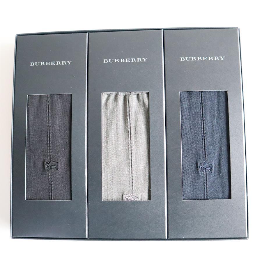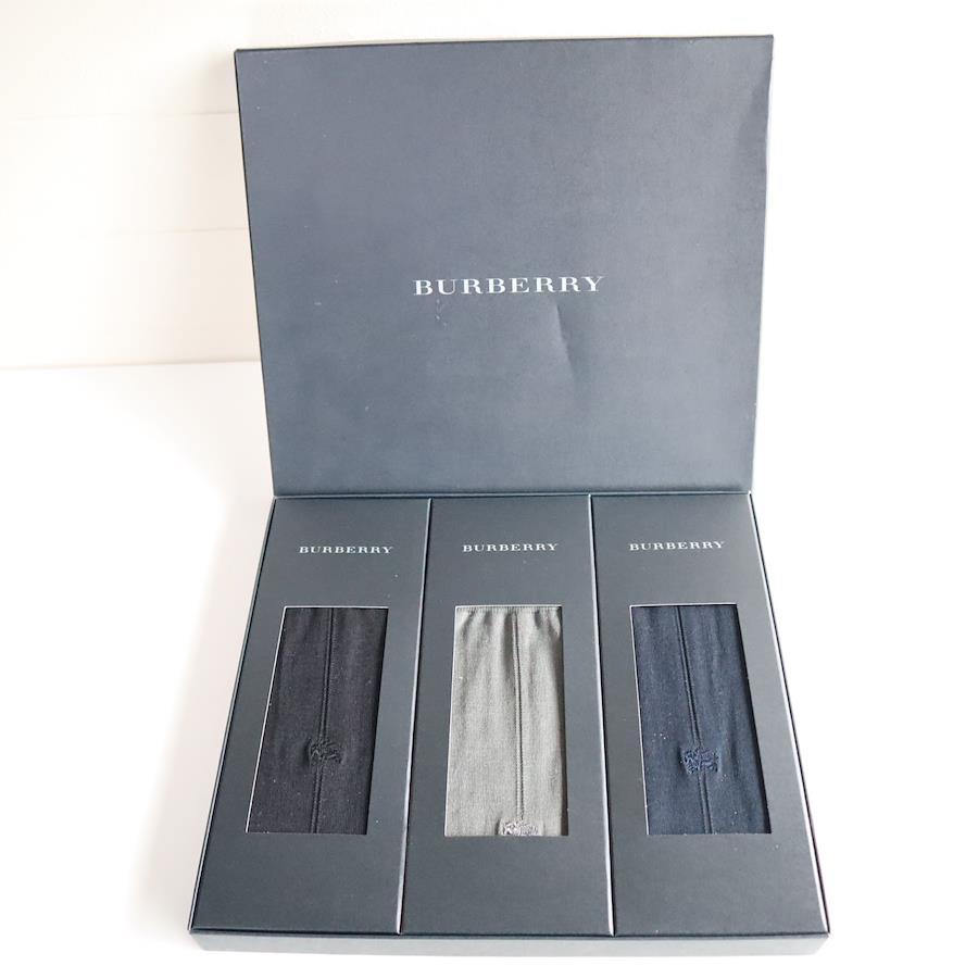 ビジネスマンの方におすすめの、BURBERRY(バーバリー)メンズビジネスソックス3足セットです。ブラック・グレー・ネイビーの落ち着いたカラーで、通勤や商談、フォーマルシーンまで幅広く活躍します。高級ブランドの未使用品をまとめて揃えられる点が大きな魅力です。