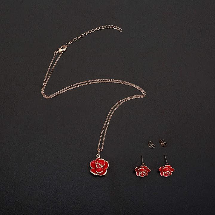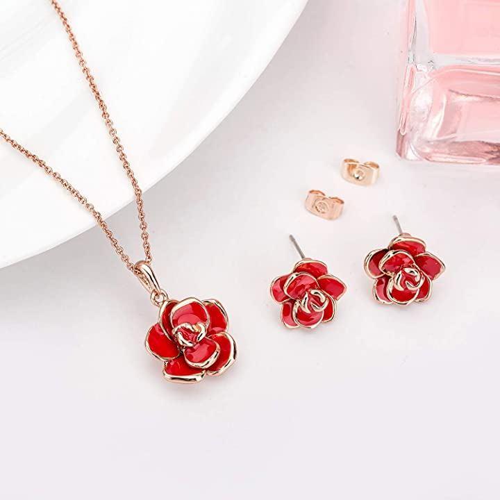 バラのピアスとネックレスは見事な工芸で作られました。