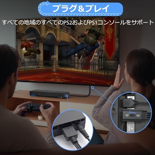 【高解像度変換で新たなゲーム体験】:PS2からHDMIへのコンバーターで、ゲームを1080P(60Hz)HDMI出力に変換し、現代のテレビやモニターでクラシックゲームを鮮明に再現します。思い出のゲームを最新の画質で再体験し、過去のゲームが今蘇ります。(※1080P非対応機器についてはご確認ください) 【アスペクト比切り替え機能】:4:3と16:9の比率切り替えで、ゲームのオリジナル表示とワイドスクリーン表示を自由に選択可能。ノスタルジックなピクセルを忠実に再現し、より没入感のあるゲーム体験を提供します 【統合デザインで簡単セットアップ】:PS2本体に直接接続できる一体型設計で、ケーブルなしのすっきりしたセットアップを実現。余計な配線がないため、すぐにゲームを始められ、すっきりとしたデザインで使用感も向上します 【プラグ&プレイですぐに楽しめる】:付属のUSB電源ケーブルを5V電源に接続するだけで、ドライバー不要で簡単に使用開始。数分以内にお気に入りのゲームが楽しめる、シンプルでスムーズな操作感を提供します 【全地域モデルに対応したユニバーサル互換性】:日本、アメリカ、ヨーロッパなど、地域に関係なくすべてのPS2/PS1モデルに対応。どの地域のゲームソフトも1080Pの高画質で楽しむことができ、手間なく世界中のゲームをお楽しみいただけます 【お知らせ】:本製品は入力信号の画質を改善する機能はありません。出力画質は入力ソースの元の鮮明度に依存し、それを超えることはありません (#lf)(#lf)(#lf)商品購入前に、ストア紹介ページをご確認ください。