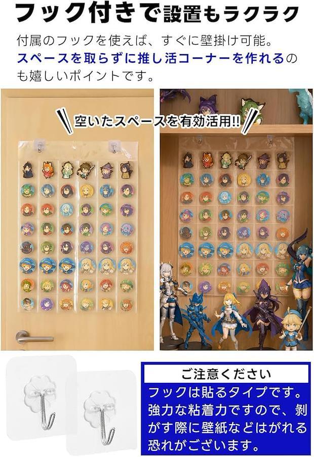 「壁掛けできる缶バッジ収納ファイル」お気に入りの缶バッジを最大48個、すっきりまとめて収納。