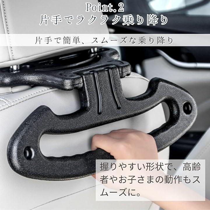 「片手で簡単、スムーズな乗り降り」ドアを開けてすぐに手が届く場所に設置できるため、車の乗り降りが非常に楽になります。