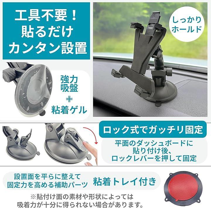 「吸盤+ゲルパッドで簡単設置」 凹凸の少ないダッシュボードに強力吸着。