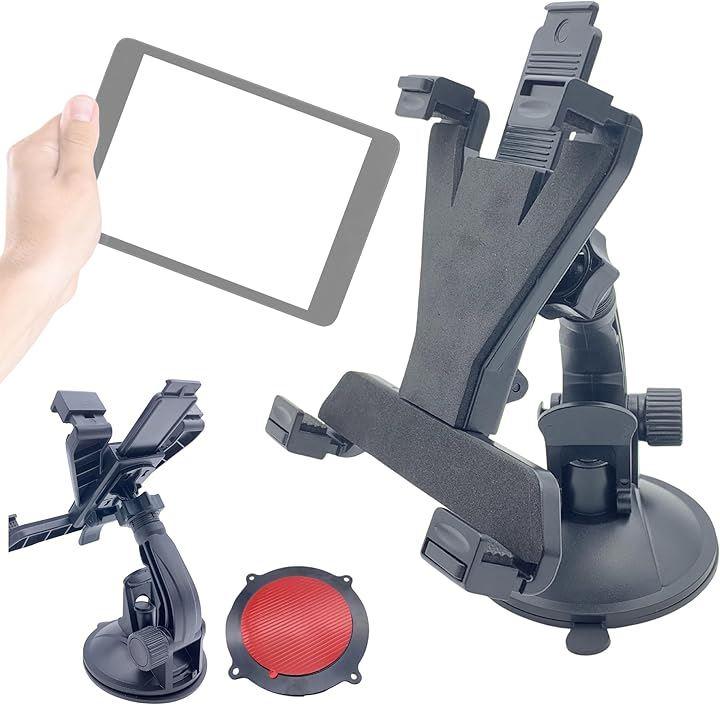 「10.5インチクラスの大型タブレットも安定固定」 強力吸盤により、大型サイズ(iPad、Fire HDなど)でもしっかり支えます。