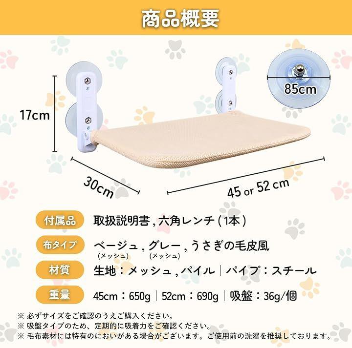 「注意事項」 ・吸盤タイプのため、定期的に吸着力を確認してください ・同封の生地には素材特有のにおいがある場合がございます。