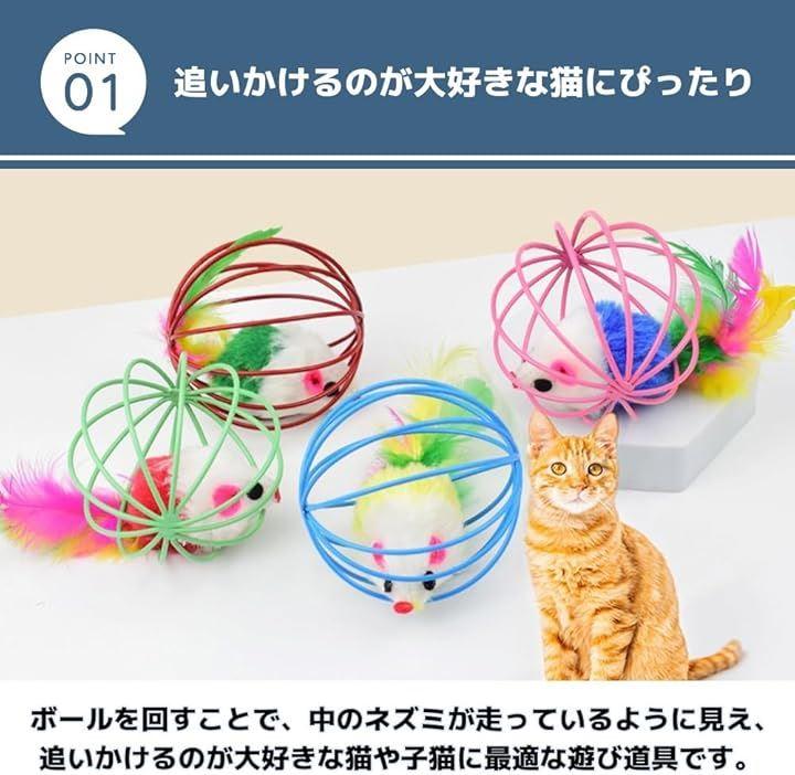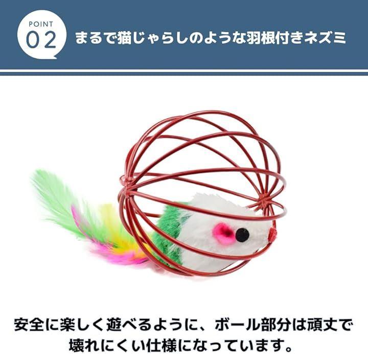 「追いかけるのが大好きな猫にぴったり」ネズミの人形が入った猫用ボールのセットです。