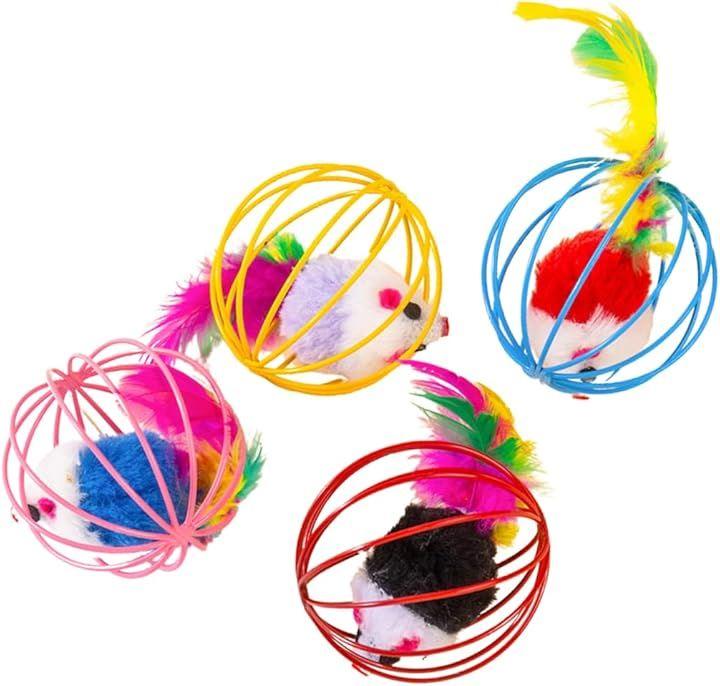 「まるで猫じゃらしのような羽根付きネズミ」工夫された羽根付きボールで、ふわふわの羽付きネズミのおもちゃは、猫じゃらしのように猫の本能を刺激します。