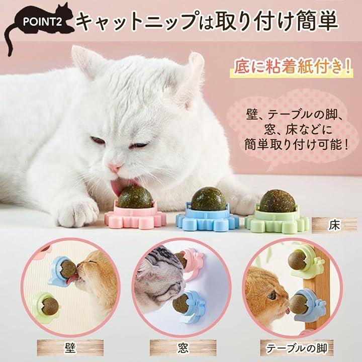 またたびボールは壁や床、テーブルや椅子の脚に貼り付けられます。