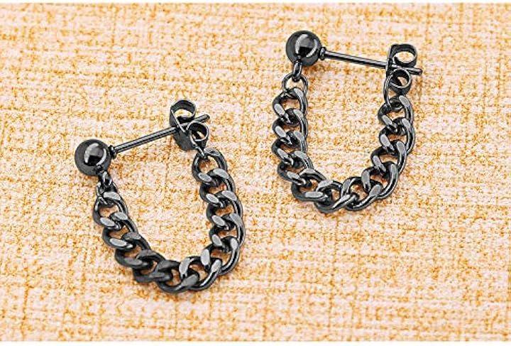 大人気デザイン チェーンピアス。両耳用2つ入り 韓国オルチャンファッション カラー:シルバー / ブラック
