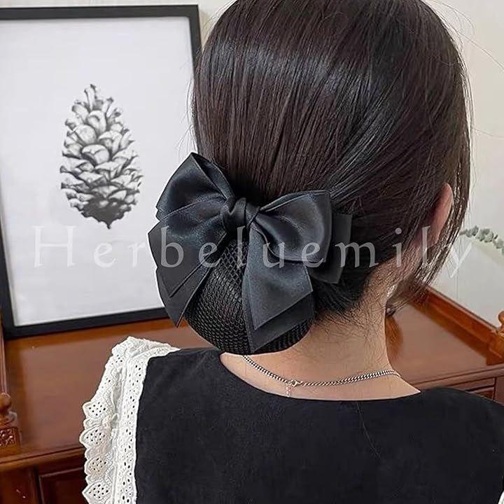 髪を包み込みまとめてくれるお団子ネットと、リボンバレッタがセットになったシニヨンネットです。