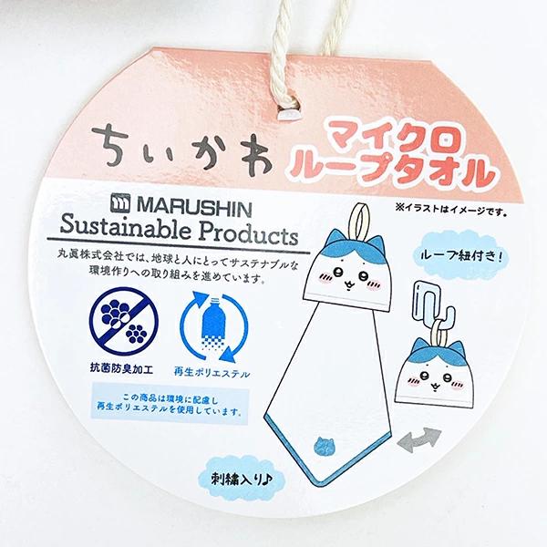 ちいかわ(ハチワレ)のフックなどに引っ掛けてご使用いただける便利なループ付きタオルです。丸めて持ち運びが出来るので便利♪コンパクトになった姿もキュート☆ふわふわマイクロファイバーで気持ちよくお使いいただけるのでお子様も喜ぶこと間違いなしです♪【サイズ(カバー):H90×W110mm】