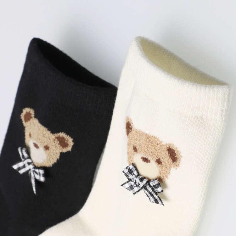 靴下は送料合わせにもピッタリです。対応サイズは14cm(13~15cm)、17cm(16~18cm)、20cm(19~21cm)です!足裏にお名前を書く欄があります!くるくるしたブークレで表現されたくまがかわいいクルー丈のソックスです。首元のチェックのリボンのモチーフがポイントです。【アイテム】雑貨 カジュアル お洒落 オシャレ かっこいい かわいい 可愛い 普段着 デイリーウェア お出かけ 子ども こども 女児 女の子 ガールズ キッズ ベビーサイズ トドラーサイズ 幼稚園 保育園 小学校 通園 通学 小学生 遠足 旅行 2024年春夏物新作 丸高衣料 小物 ブラック 黒色 ホワイト 白色 クマ 動物 アニマル キッズフォーレ