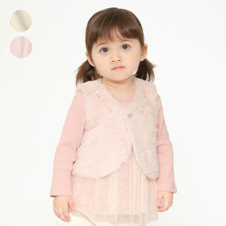 ふわふわフェイクファーのマント・ポンチョ。ボタン1つで簡単に着脱ができ、秋?冬にかけて寒い日のお出かけにぴったりなアイテムです。襟元のリボンがポイント♪寒い冬はもちろん、インナーに薄手のトップスやワンピースを合わせることで、秋から冬まで長く活用できます。結婚式やパーティー、ちょっとしたお出かけの際にも、カジュアルなデイリールックにも活躍する、万能アイテムです。【アイテム】プレゼント ギフト ベスト ボレロ アウター ベビーアウター 赤ちゃん服 ベビー服 贈り物 トップス カジュアル お洒落 オシャレ かわいい 可愛い 普段着 デイリーウェア お出かけ着 お外遊び着 子ども こども キッズ ベビーサイズ 幼稚園 保育園 通園 2024年秋冬物新作 丸高衣料 女の子 ガールズ 女児 出産祝い ベビーギフト 結婚式 冠婚葬祭 パーティー オケージョン キッズズー