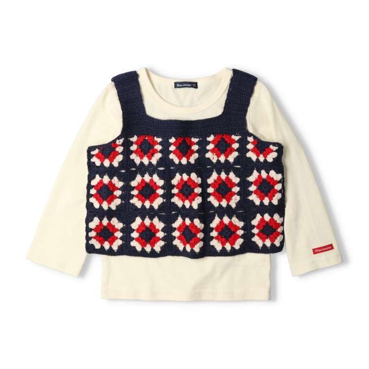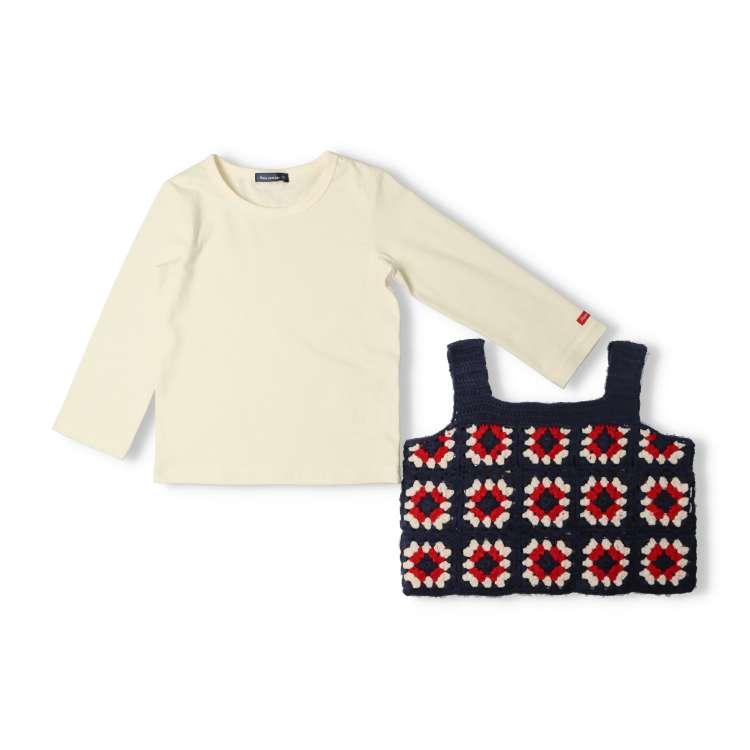 柔らかくて肌触りの良い天竺(綿)100%のロンTと、かぎ針編みベストがセットになったアイテム!moujonjonらしい元気な配色のかぎ針編みベストは、とっても目を惹くトレンドアイテム!インナーを半袖Tシャツに変えれば、暑さの残る初秋から秋のおしゃれが楽しめます♪同じかぎ針編みのベレー帽(M63401)も合わせたコーデがおすすめ!【アイテム】長袖 ロングスリーブ トップス シンプル ガーリー フェミニン カジュアル お洒落 オシャレ かわいい 可愛い 普段着 デイリーウェア お出かけ着 お外着 お外遊び着 子ども こども 女児 女の子 ガールズ キッズ ベビーサイズ トドラーサイズ 幼稚園 保育園 小学校 通園 通学 小学生 2024年秋冬物新作 丸高衣料 オフホワイト 白色 ムージョンジョン コットン100% 綿100% かぎ針編み クロシェ編み かぎ針編みベスト クロシェ編みベスト