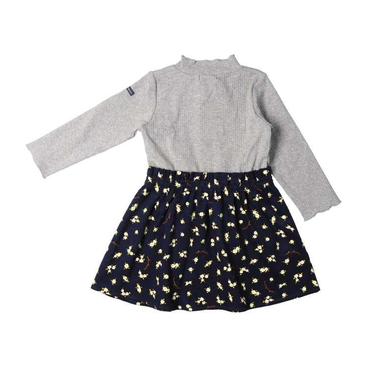 テレコ生地のハイネックTシャツに、花柄のコーデュロイスカートが切り替えになった長袖ワンピース。異なる2つの素材がドッキングされた、華やかな一枚です。テレコ生地は伸縮性、ストレッチ性があって伸びの良い素材なので、首元も良く伸び、お着替えも楽ちんでストレスフリーな着心地です!秋コーデにぴったりな、レトロな雰囲気の花柄がキュート♪ウエスト部分には、リボンがアクセントとして付いています!同じ花柄を使ったロンパース(M62703)、ロンT(M62803)があるので、姉妹やお友達とペア、リンクコーデ、お揃い、おそろいコーディネートも楽しめます!※ロンパースは同じ花柄ですが、生地は異なります。【アイテム】長袖 ロングスリーブ ワンピ シンプル ガーリー フェミニン カジュアル お洒落 オシャレ かわいい 可愛い 普段着 デイリーウェア お出かけ着 お外着 お外遊び着 子ども こども 女児 女の子 ガールズ キッズ ベビーサイズ トドラーサイズ 幼稚園 保育園 小学校 通園 通学 小学生 2024年秋冬物新作 丸高衣料 グレー 灰色 黄色 キイロ イエロー コン ネイビー 紺色 姉妹 お揃い オソロ おそろい お揃いリンク リンクコーデ ペア シミラールック ムージョンジョン