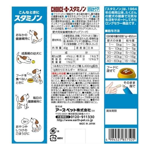 食欲がないときの健康サポートと、足・腰・関節の健康維持 犬が喜ぶ味で嗜好性抜群。小麦胚芽油に含まれるオクタコサノールとビタミンEが元気と免疫力をサポートします。フラクトオリゴ糖配合で、善玉菌を増やし腸内環境の健康を維持します。(1本当たり6400mg配合)。小麦胚芽油に含まれるリノール酸、リノレン酸は、皮膚の健康と毛艶をサポート。免疫力の維持をサポート。消化吸収が良いペースト状。