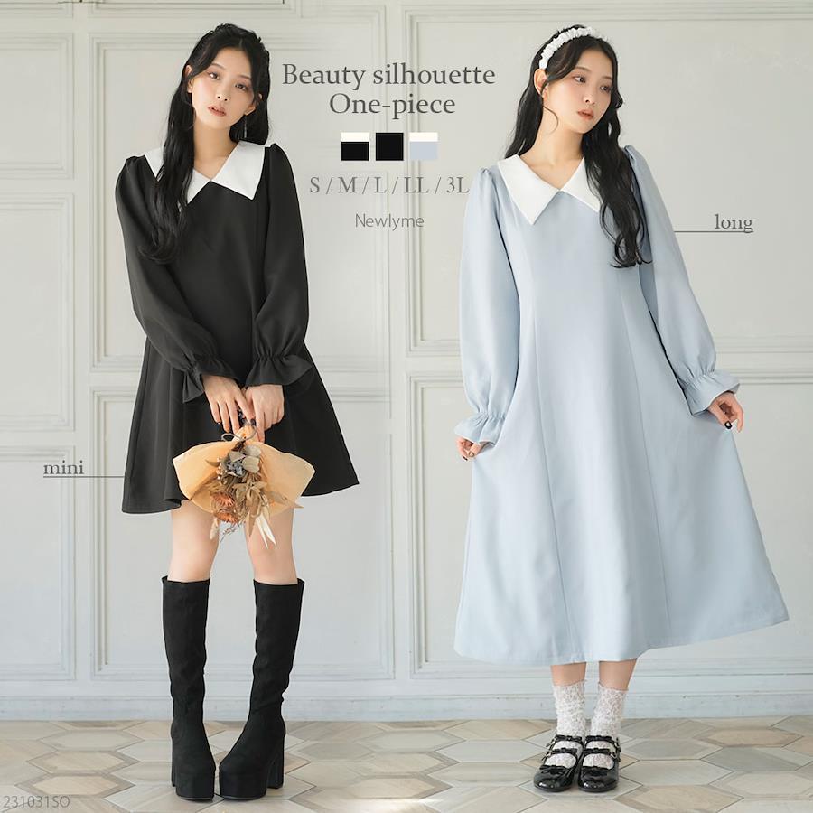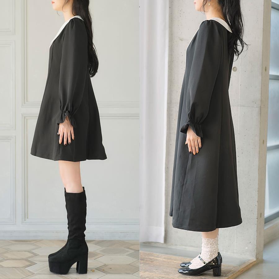 着痩せ効果抜群♪美シルエット配色ワンピースの長袖版が登場です。