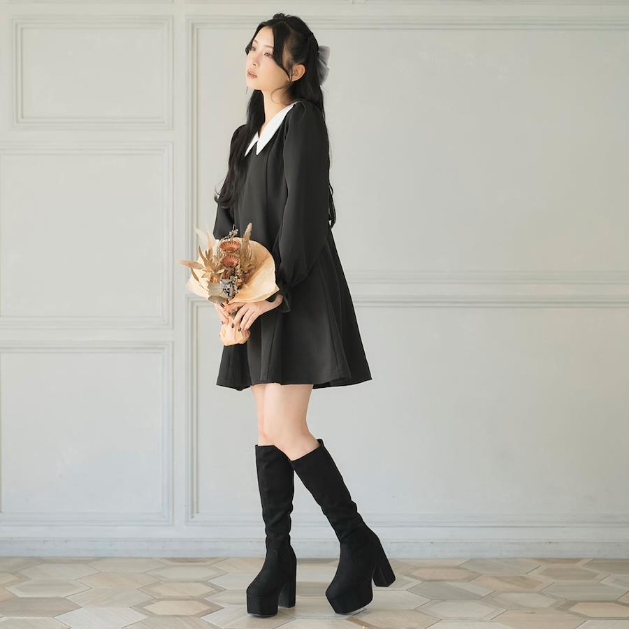 【コーディネート】シンプルながら主役級なデザインで、1枚だけでコーディネートが完成♪ミニ丈はトレンドのロングブーツを合わせたスタイルがおすすめです。ロング丈もショートブーツが映える丈感なので、大人っぽく着たいかたはショートブーツを、クラシカルに着たい方はストラップパンプスを合わせるのがおすすめです。《透け感》なし 《生地の厚さ》普通 《裏地》あり 《伸縮性》ややあり《生産国》中国