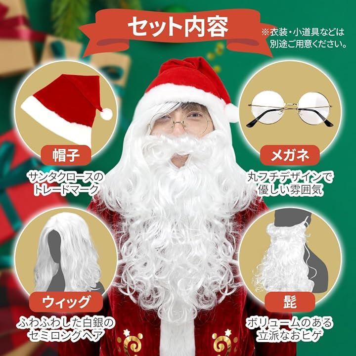 「セット内容」(1)フルセット:サンタ帽子/ショール/トップス/パンツ/ベルト/ブーツカバー/ウィッグ/髭/メガネ/グローブ(計10点) (2)簡易セット:サンタ帽子/ウィッグ/髭/メガネ(計4点) 「サイズ(約)」《XL》バスト:128cm/トップウエスト:128cm/パンツウエスト:82cm/ヒップ:120cm/肩幅:58cm/袖丈:56cm/ドレス丈:84cm/パンツ丈:79cm/帽子頭囲:60cm 《XXL》バスト: 136cm/トップウエスト:136cm/パンツウエスト:90cm/ヒップ:130cm/肩幅:62cm/袖丈:58cm/着丈:86cm/パンツ丈:81cm/帽子頭囲:60cm 素材:ポリエステル