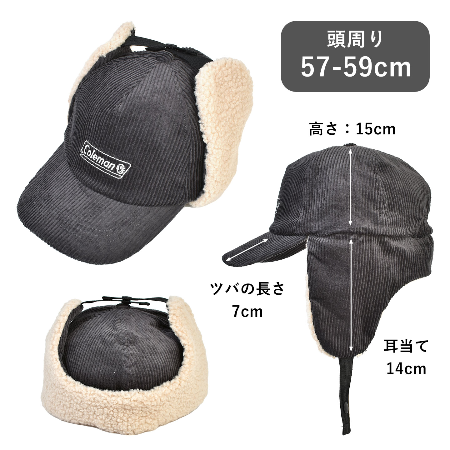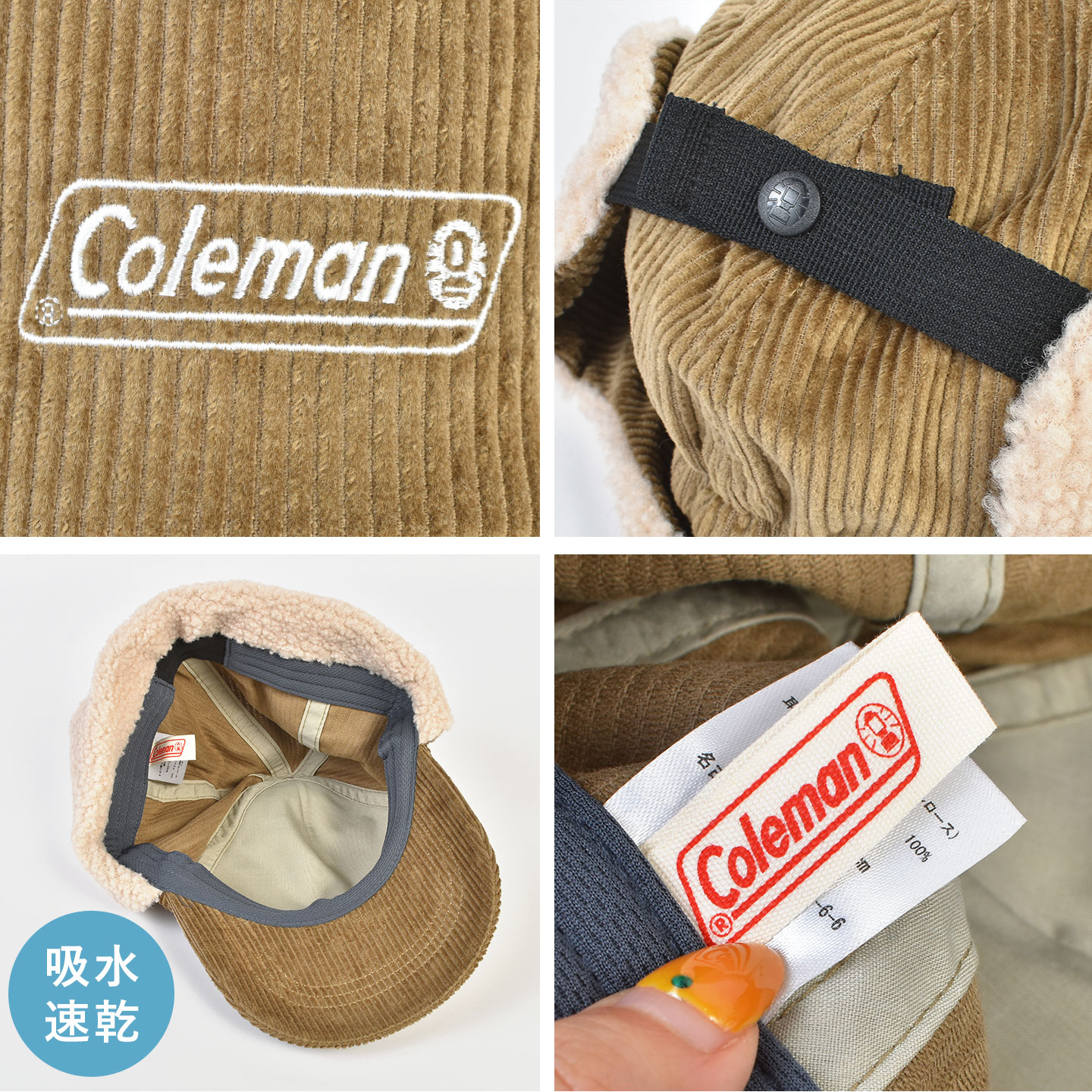 【太コールフライトキャップ】アウトドアブランドColeman(コールマン)のロゴ刺繍がポイントのフライトキャップ。秋冬らしいコーデュロイ生地のキャップに裏ボアの耳当て付きで、おしゃれにしっかり防寒できるアイテムです。お手入れしやすい吸水速乾生地使用。アウトドアシーンはもちろん、カジュアルなタウンユースにもぴったり。ユニセックスに着用できるデザインとサイズです。プレゼントにも◎