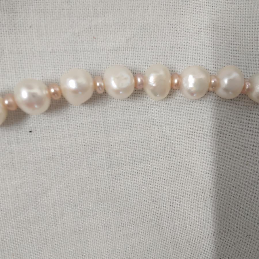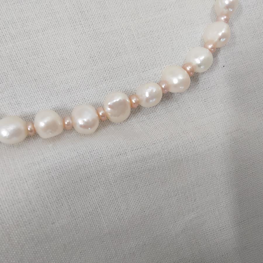 カラー入り淡水パールネックレスです。新品未使用ですが長期保管により経年劣化しているかもしれません軽くチェックしましたが、大きな傷もなく(天然の製品の都合上の小キズ・変形はあります)(写真参照)美品だと思います。金具には925・ SILVERの文字がみられます。