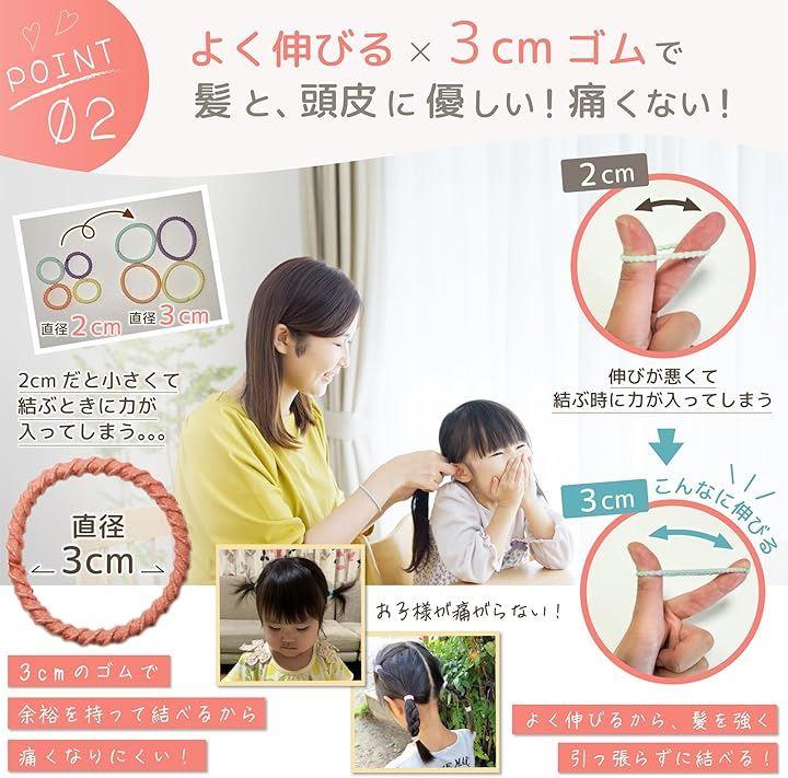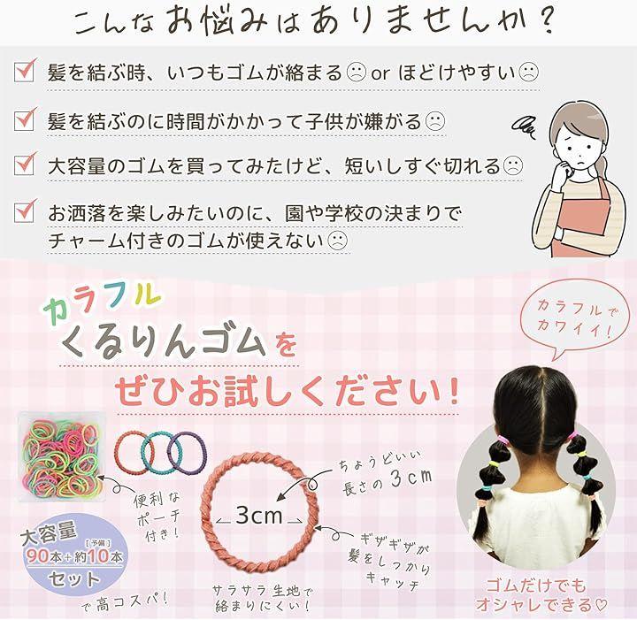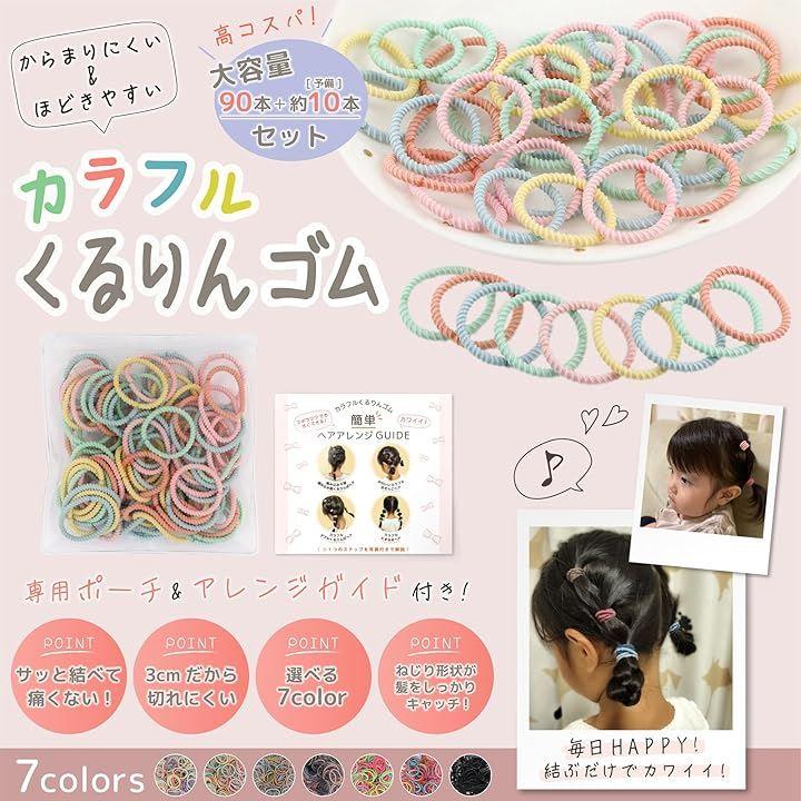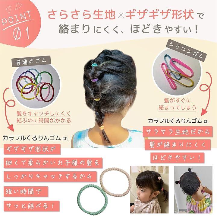 「結びやすい子供用ヘアゴム」Premigoodのカラフルくるりんゴムは、子供の細い髪でもしっかりキャッチし、からまないヘアゴム。