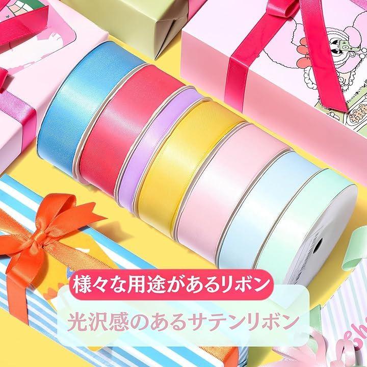 プレゼントを華やかに彩る「サテンリボン カラフル」 大切な人への贈り物を、もっと特別なものにしませんか? このサテンリボンは、カラフルな色合いで、あなたのギフトを華やかに彩ります。