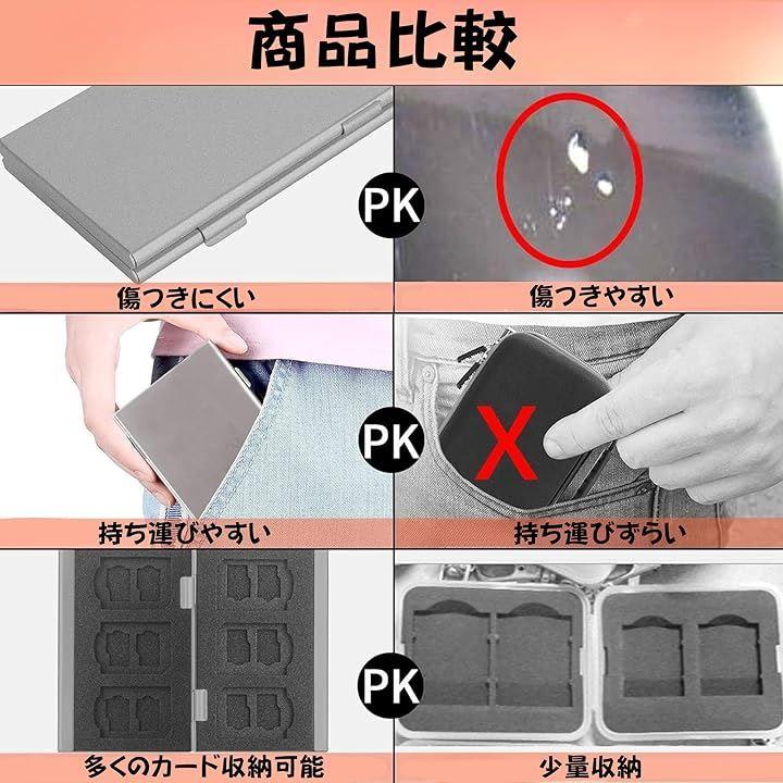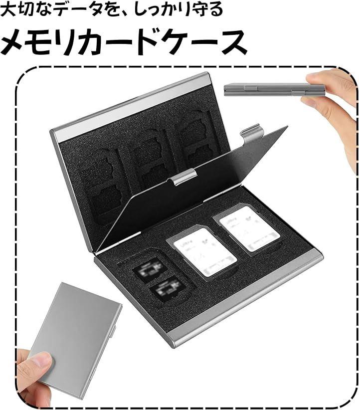 「安心の防塵・耐衝撃」このアルミ製メモリカードケースは、SDカードやMicroSDカードをしっかりと保護します。