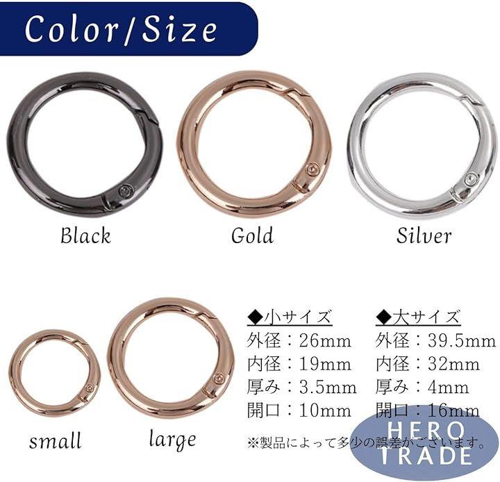 キーリングやバッグなどに様々な用途に活用できる汎用丸型カラビナ10個セット。