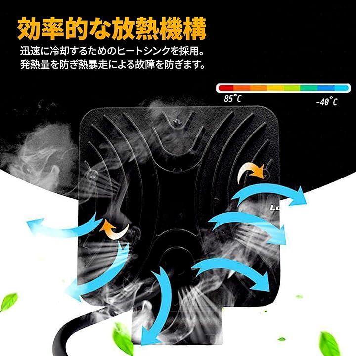 「性能」サイズ:10.8x10.8x2.8 cm 動作電圧: 12v-24v DC消費電力: 144W防水性能:IP 67色温度: 6500K ルーメン:8000lm
