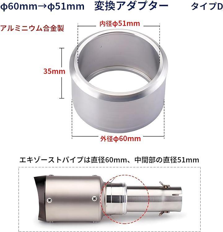 排気マフラーのパイプ(エキゾーストパイプ)とサイズが異なるサイレンサーを取り付けるための変換アダプターになります。